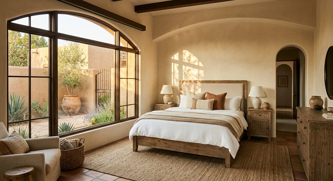 - Refresh the front door, lighting, and house numbers. Add two minimal, desert-appropriate pots at the entry.